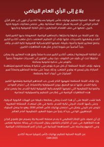 بلاغ إلى الرأي العام الرياضي و الجماهير الرياضية بأكادير